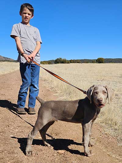 15 months ago, I picked up my boy Axel from you. He is the most gentle, happy, loving, playful Weim! I was looking for a pup to spend a lot of time on the trails, and he has exceeded all expectations! His demeanor, intelligence & kindness is a testament to the way you breed such wonderful Weims. Without a doubt, I’d call you for another pup.